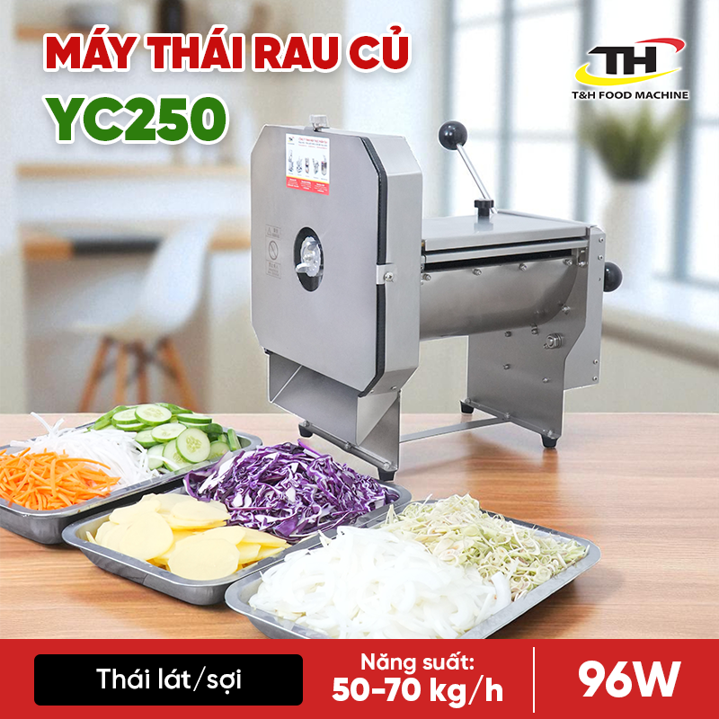 - Tiết Kiệm Thời Gian và Công Sức : YC-250 giúp bạn tiết kiệm thời gian và công sức đáng kể so với việc thái rau bằng tay. Máy có thể thái cả chục kg rau củ chỉ trong vài phút và cho ra sản phẩm đều như một.